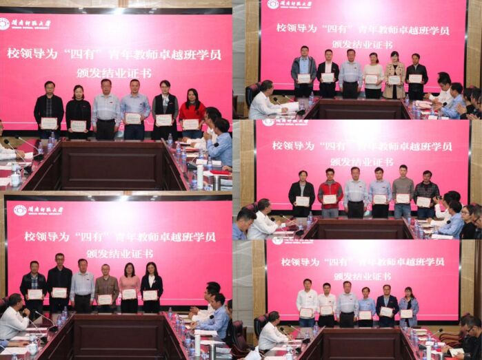 教师工作处处长林培榕宣读了第一期“四有”青年教师卓越班结业名单及先进标兵名单。肖庆伟为学员颁发结业证书,吴彬镪为“四有”青年教师“先进标兵”颁发荣誉证书。