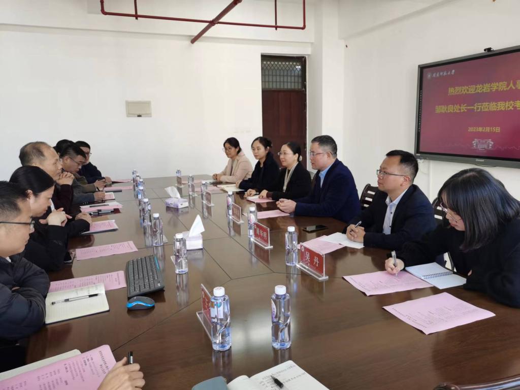 2月15日下午,龙岩学院人事处处长邹耿良一行来我校考察交流。座谈会在科技楼北1309会议室举行,教师工作部(人事处)处长黄伟东、分管副处长及相关职能科室负责人参加座谈会。