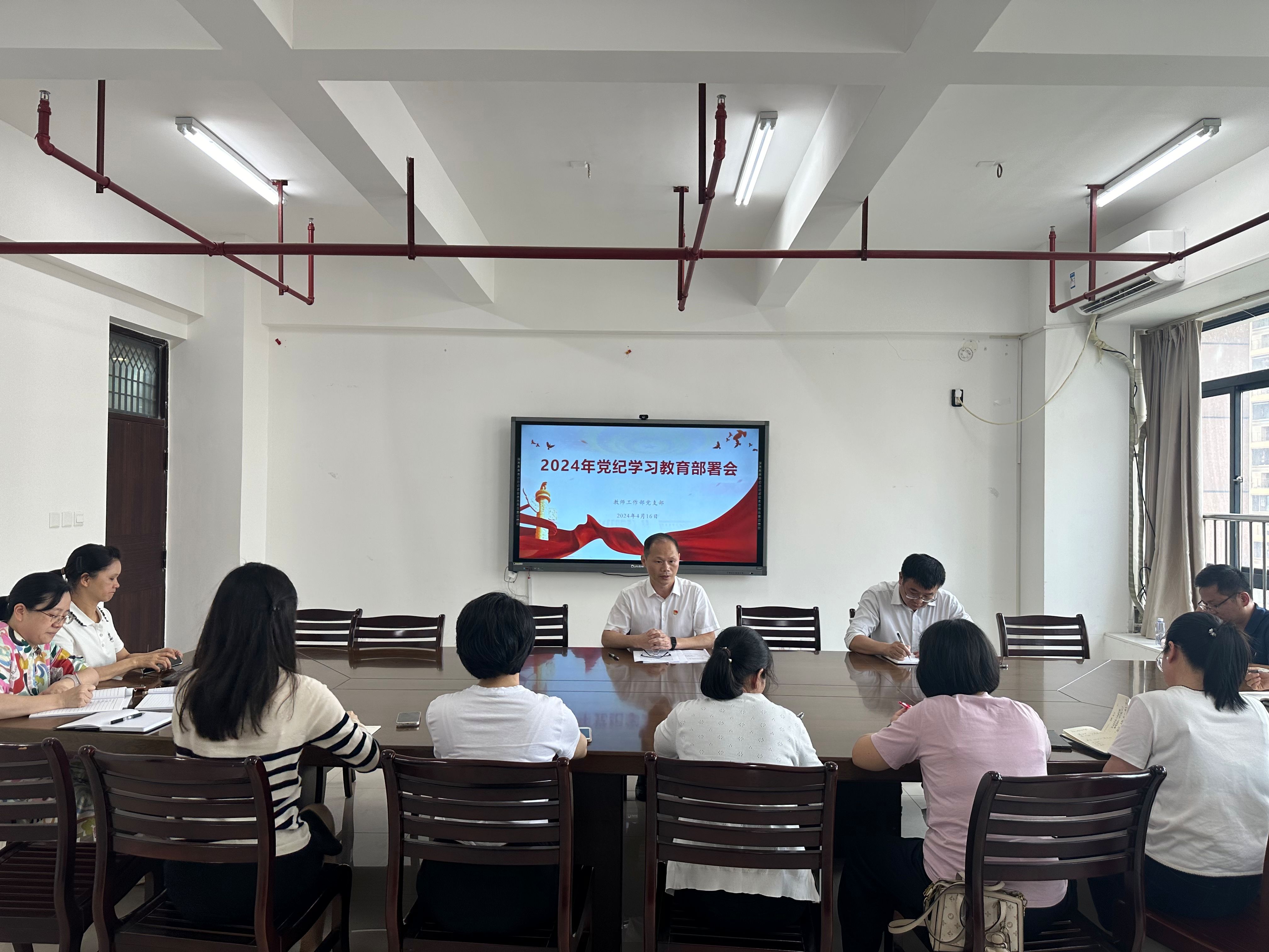 4月16日,教师工作部(人事处)党支部召开党员大会,部署党纪学习教育工作。会上,党支部书记黄伟东传达学习习近平总书记关于党纪学习教育的重要讲话和重要指示精神,贯彻落实中央、省委党的建设工作领导小组会议精神、校党委扩大会议精神,对党支部开展党纪学习教育做部署安排。