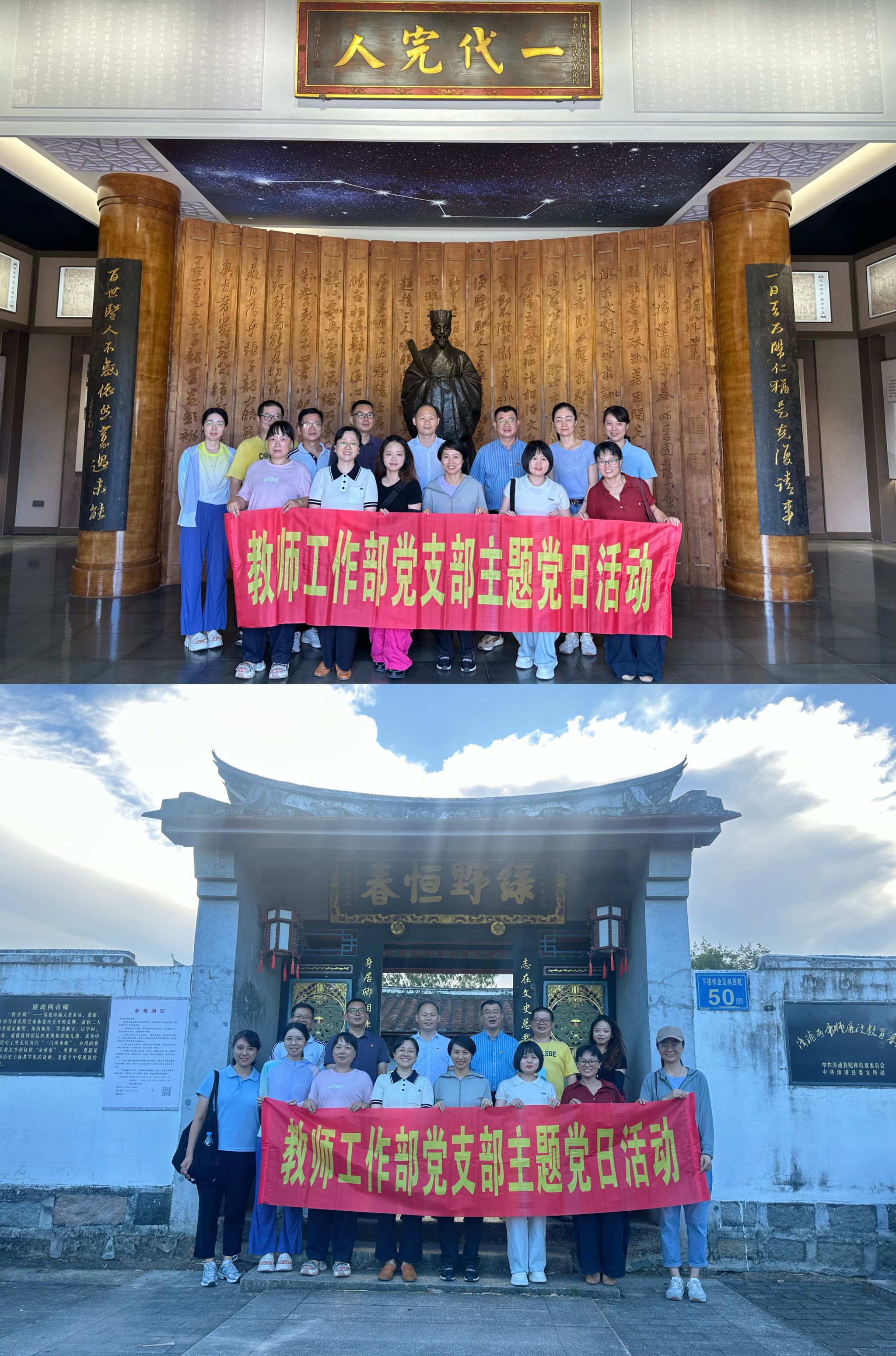 为深入贯彻中央八项规定精神学习教育,加强党员廉洁自律意识和师德师风建设,2025年6月27日,教师工作部党支部组织党员赴漳浦县,开展了以“追寻先贤足迹,涵养清风正气”为主题的党日活动,参观了漳浦鹿溪黄道周纪念馆、蓝氏三杰馆和蔡新故居。
