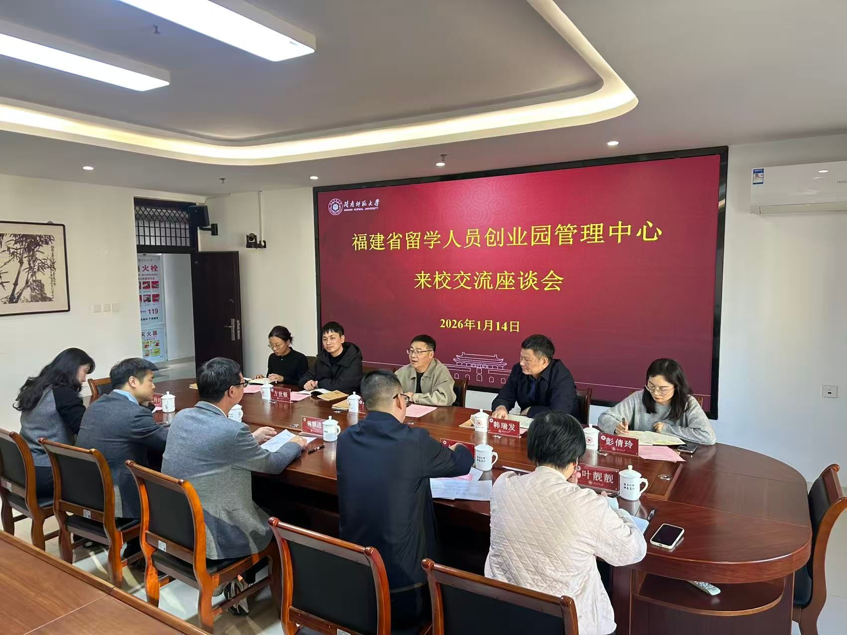 1月14日,福建省留学人员创业园管理中心主任王日洲一行来我校调研,就海外人才引进与合作开展交流。校党委常委、副校长林耀进参与调研。