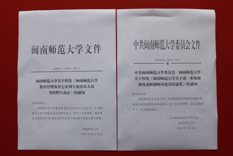 2015年,学校根据教育部和省教育厅相关文件精神,首次开展优秀教师、优秀教育工作者评审表彰工作。教师工作处协同宣传部、工会、教务处等部门,制定评优指标体系,开展全校优秀教师、优秀教育工作者的申报和评审工作。通过层层选拔,在第31个教师节共表彰了19名优秀教师、18名优秀教育工作者,通过榜样示范,引导广大教师自觉提高师德修养,争做学生爱戴敬仰的品行之师、学问之师。
